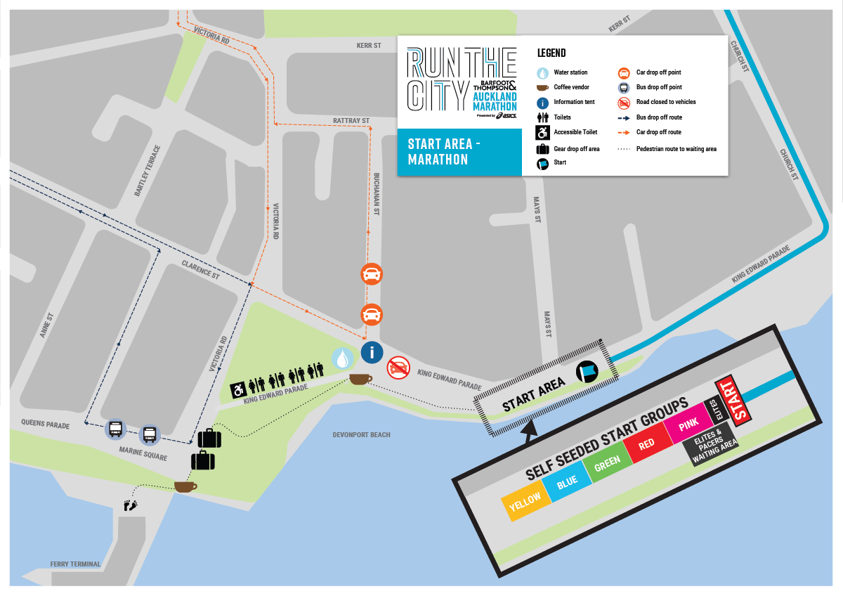 Start Line | King Edward Parade, Devonport, Auckland. Click here to view a map of the start area |